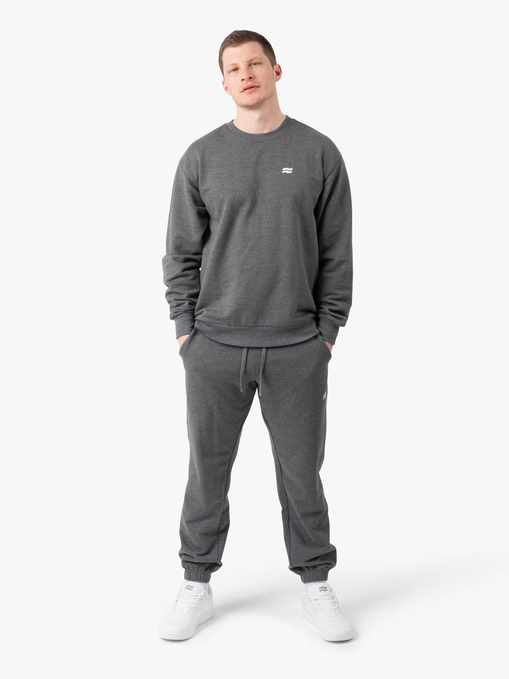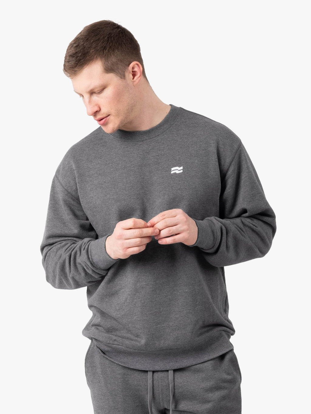 Relaxed-fit crewneck sweatshirt crafted from our premium Canadian-milled Midweight Terry Fleece. A generous fit with extra sleeve length and room to move for our taller and more muscular athletes. Flatlock stitching and tonal embroidered flag.