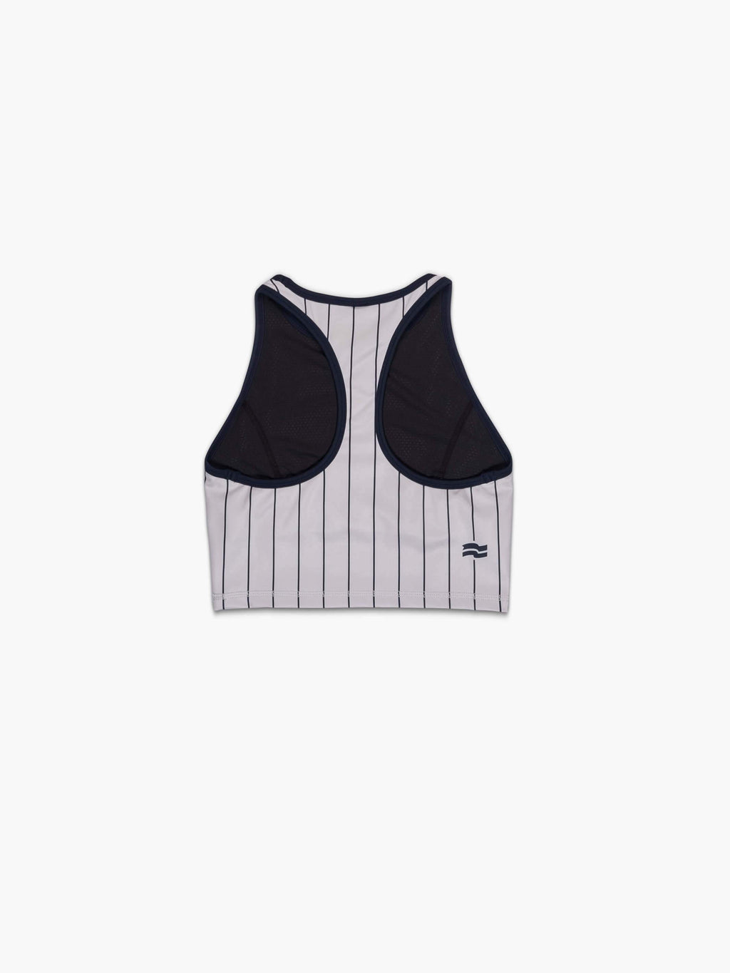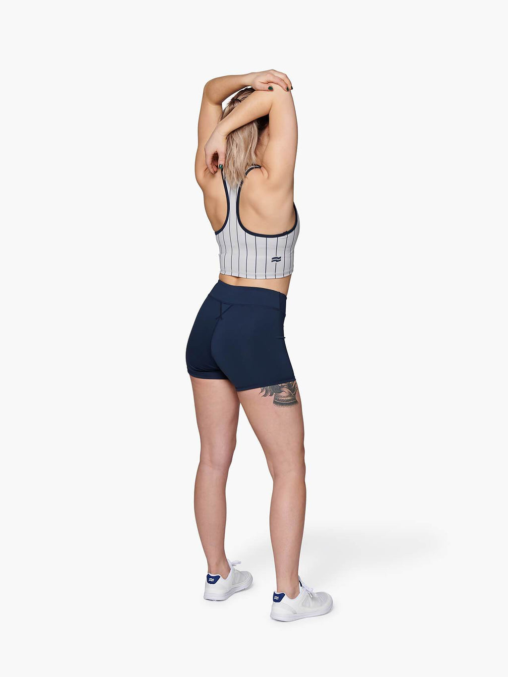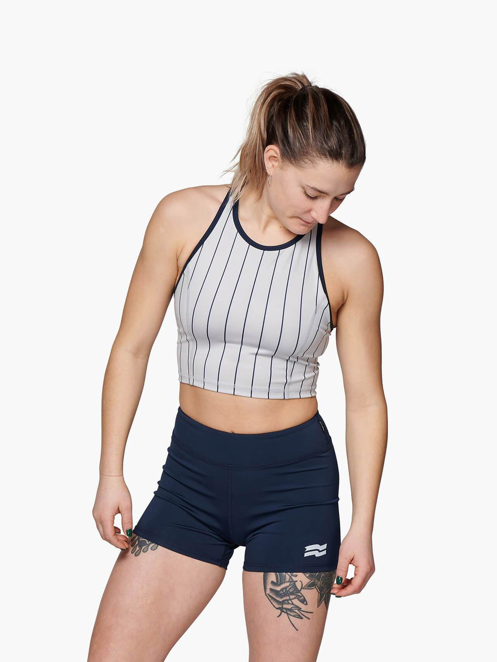 Strike Movement women’s Classic Sports Bra in Navy Pinstripe racerback tank crop top