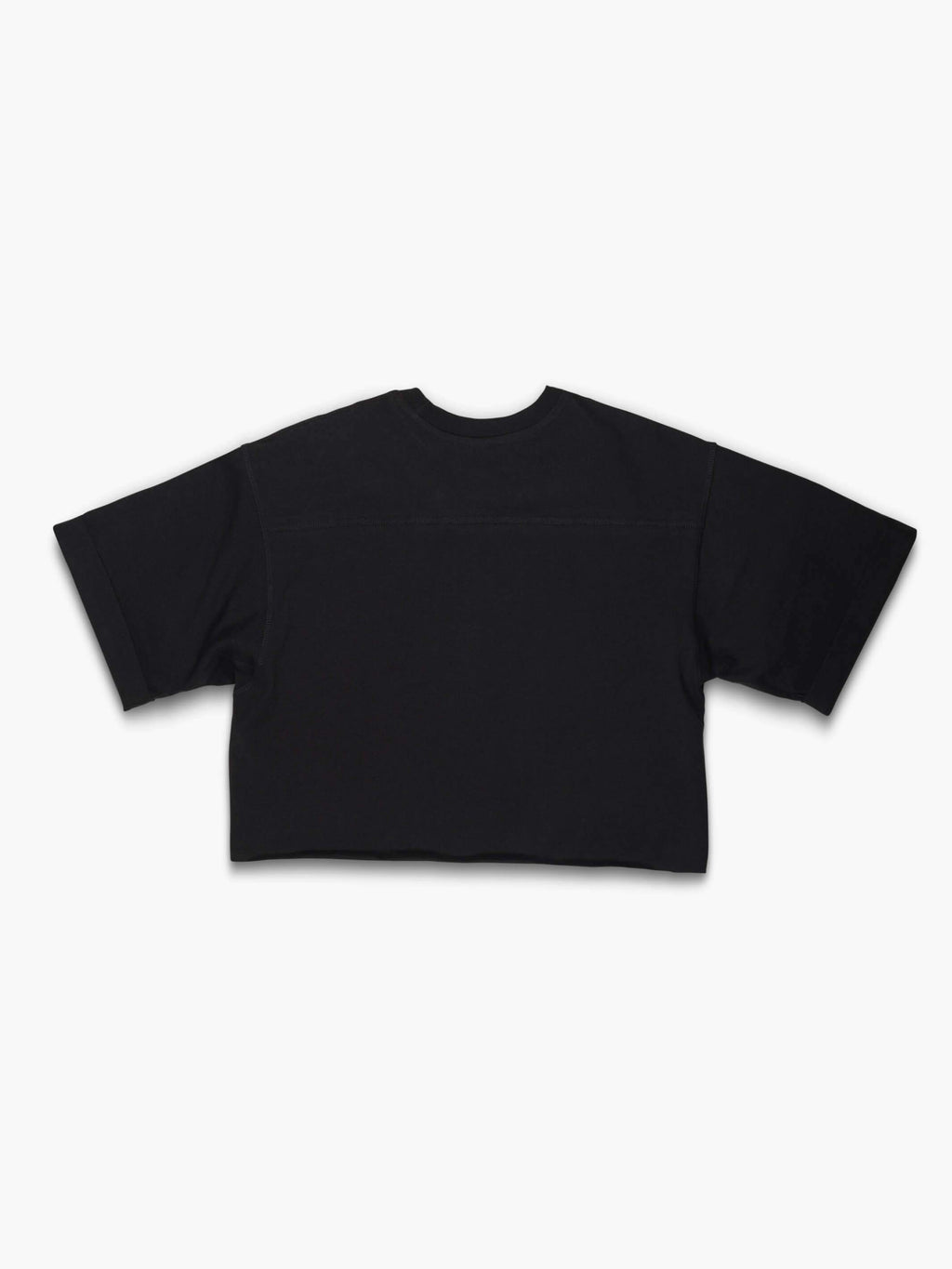 Cropped vintage football jersey style with a dropped shoulder and oversized fit.
