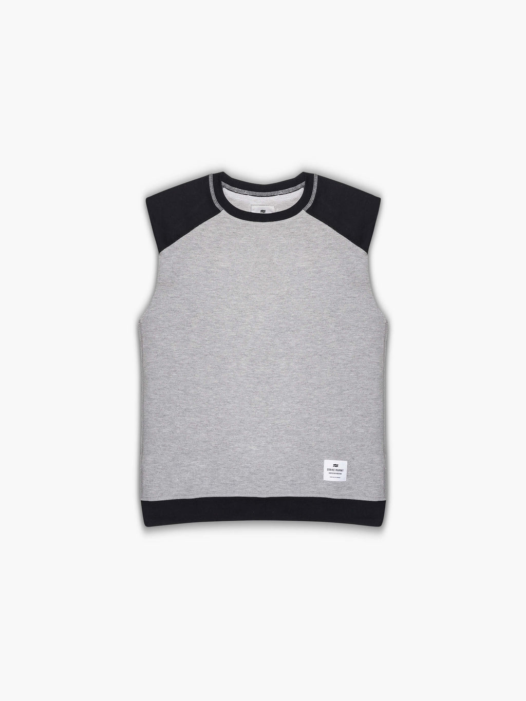Sleeveless crewneck sweatshirt with raw edge arm openings. Keeps your core warm but with total upper body mobility and unrestricted range of motion.