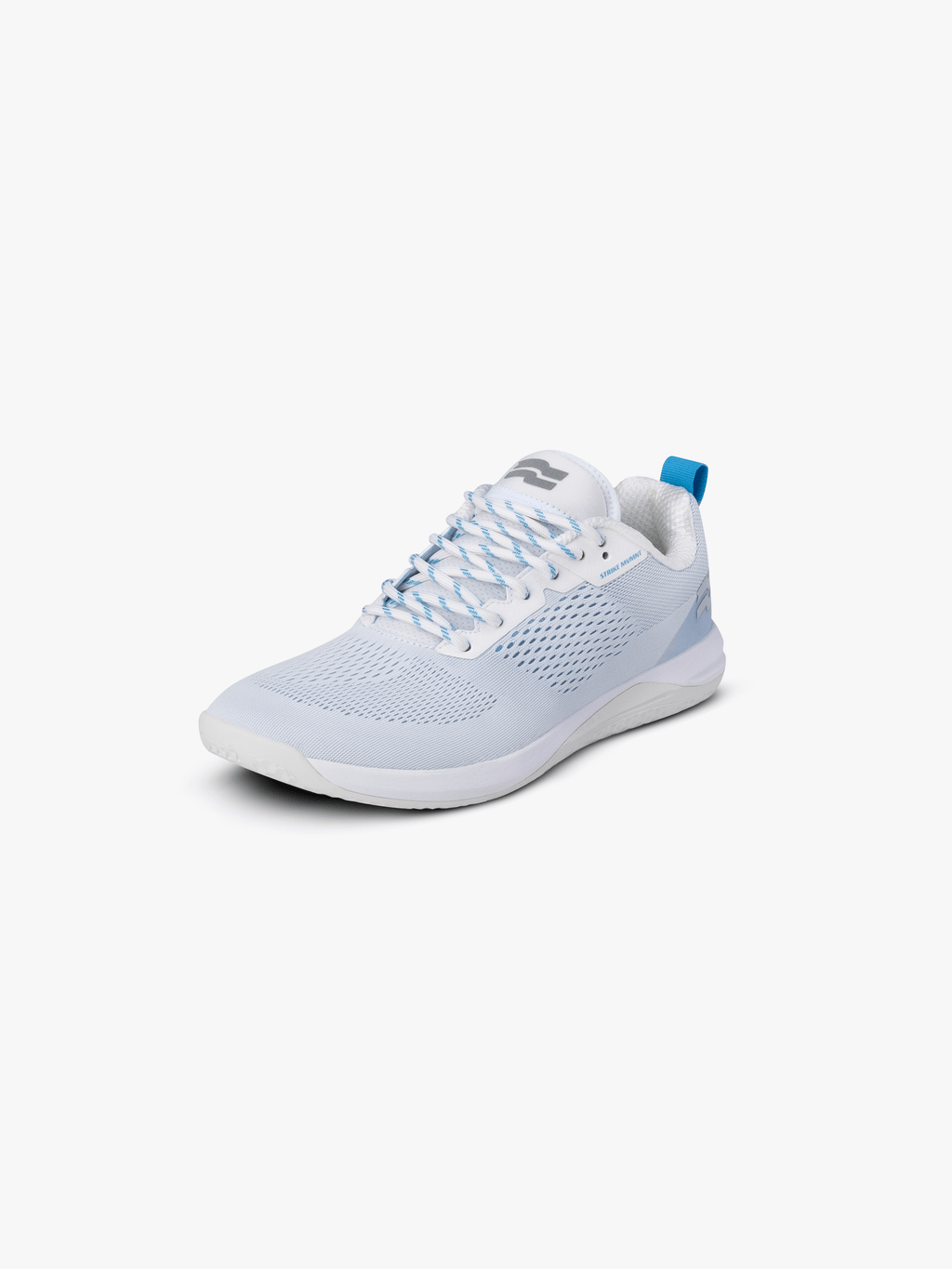 This unique colorway lets neon blue set the tone of an all white shoe with the secondary mesh underlay peeking through the 3D engineered upper and set off with neon blue heel pull, lace hits and outsole logo.