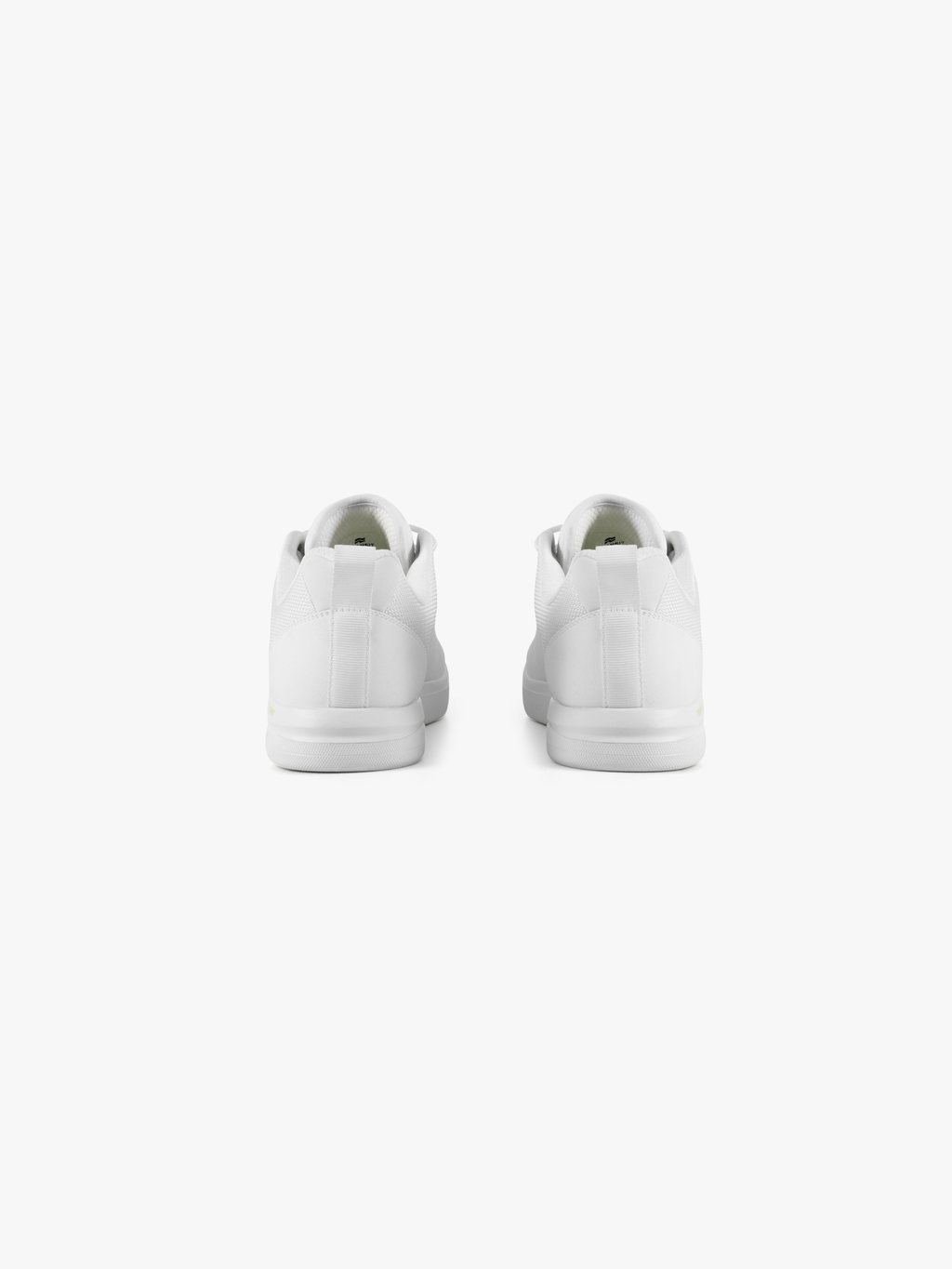 Freessh. A chalk white upper with a pop of neon green and reflective silver flag logo on tongue.