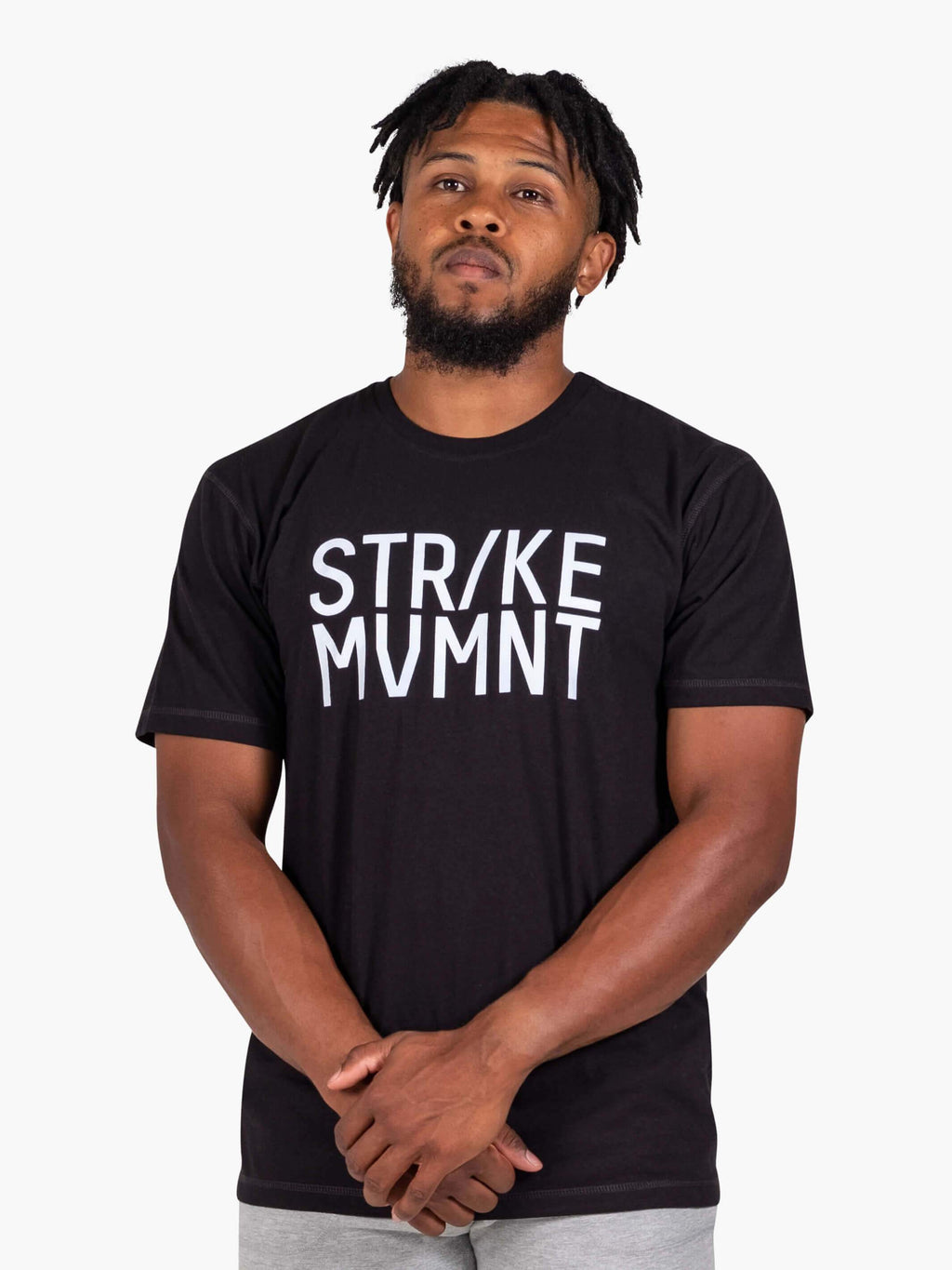 Athlete is 5'8" and 175 lbs and is wearing a size medium Timeless Tee. Shown with Mobil Sweatpants and the Pace AF Trainers.