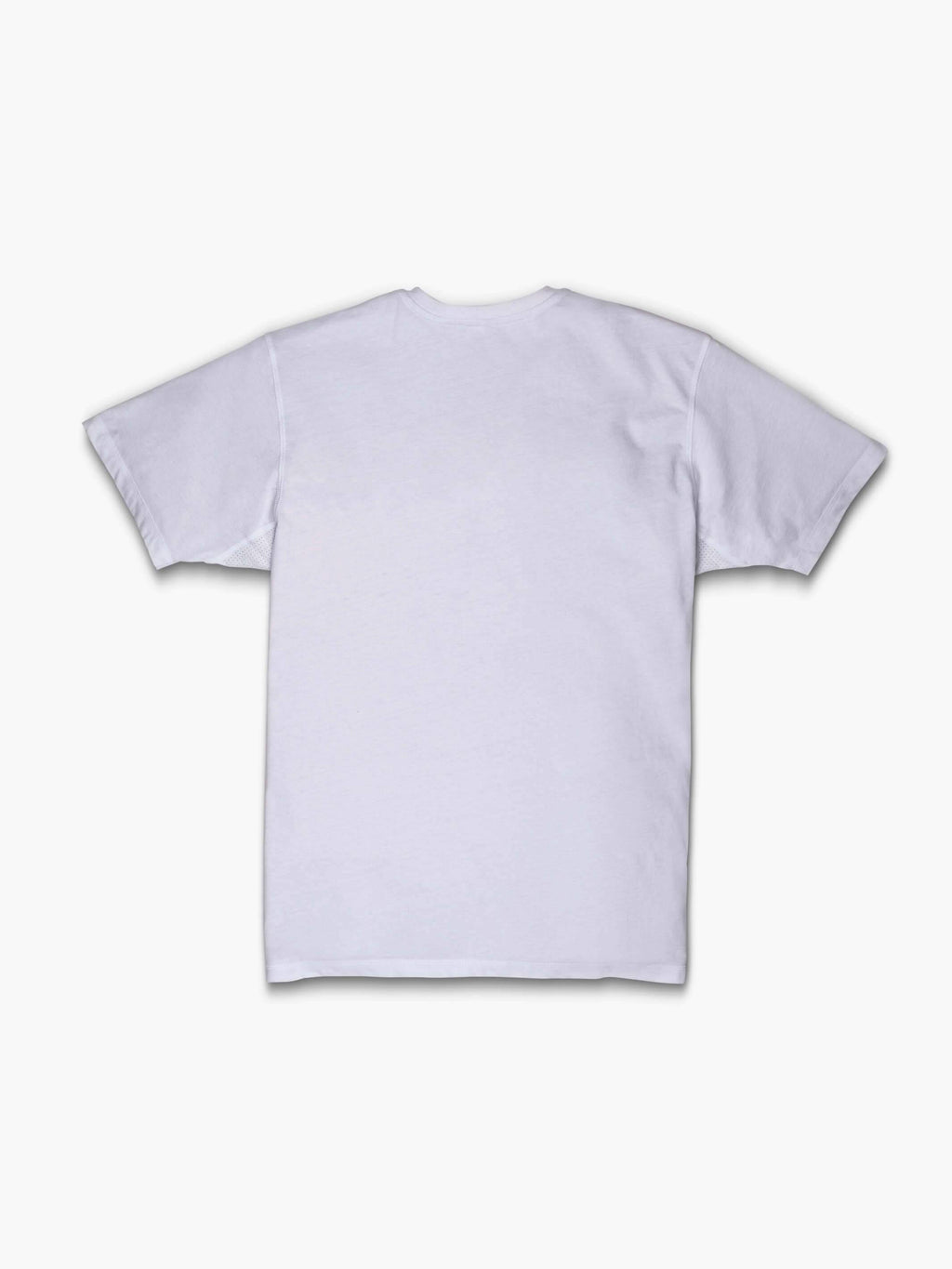 Athlete is 5'8" and 175 lbs and is wearing a size medium Timeless Tee. Shown with Mobil Sweatpants and the Chill Pill Transit AF Trainers.