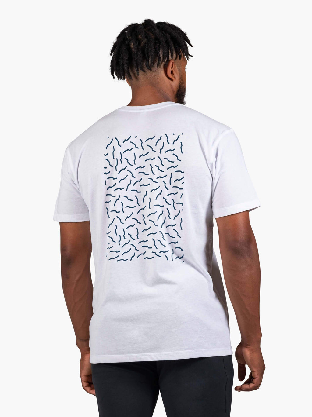 Strike Movement Men’s Timeless Vented T-Shirt with Pattern print in Classic White and Navy Blue shown back view