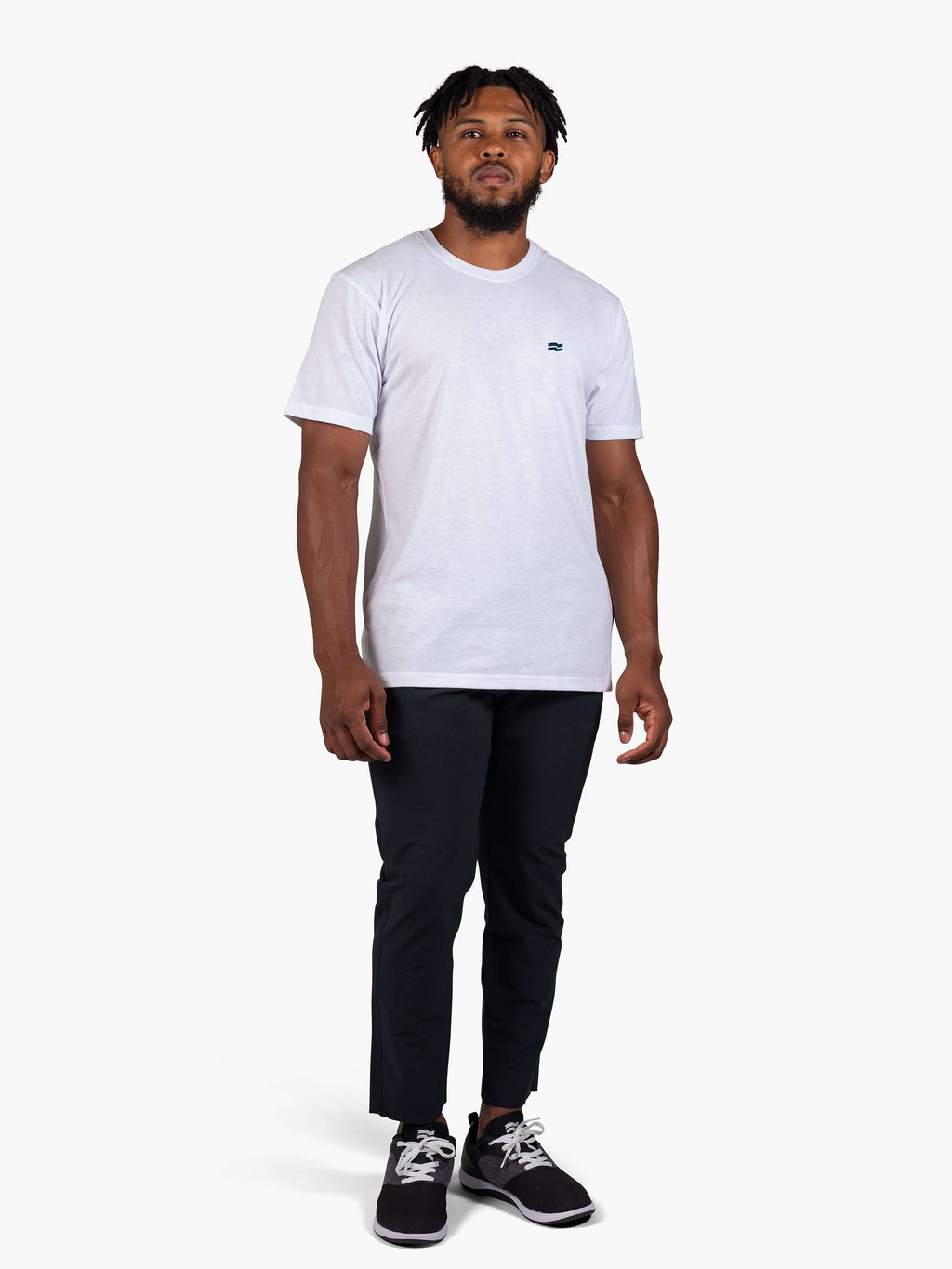 Strike Movement Men’s Timeless Vented T-Shirt with Pattern print in Classic White and Navy Blue shown with FWD pants and Pace Training shoes