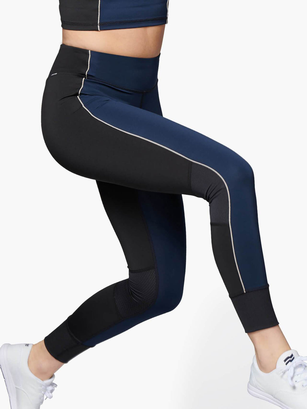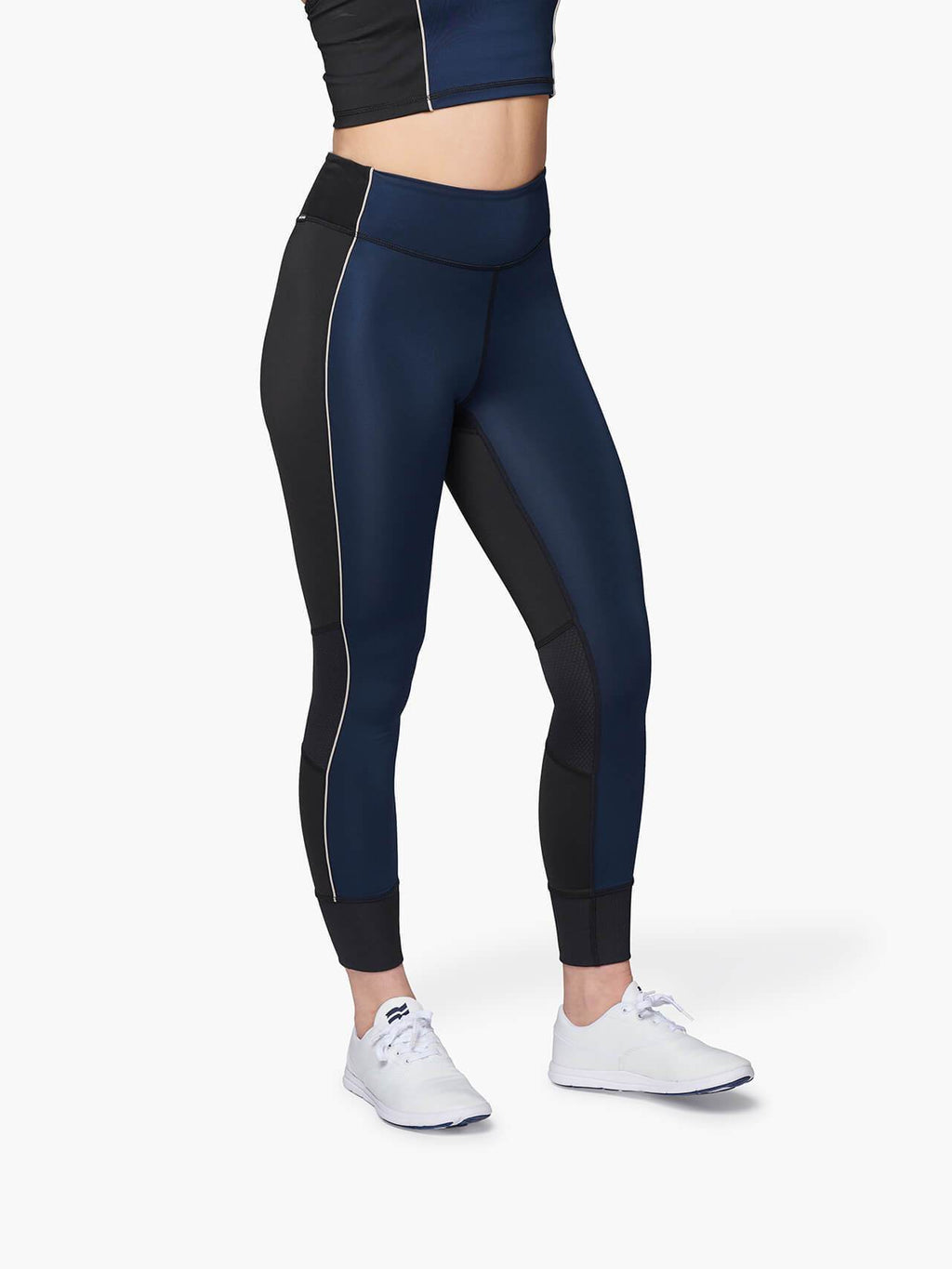 High-rise running tight with stretch vertical piping and colorblocking creates a streamline silhouette from waist to ribbed cuff. Hidden waistband pocket keeps your essentials close when you’re on the move.
