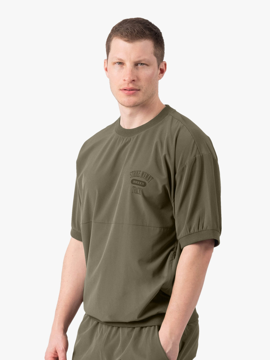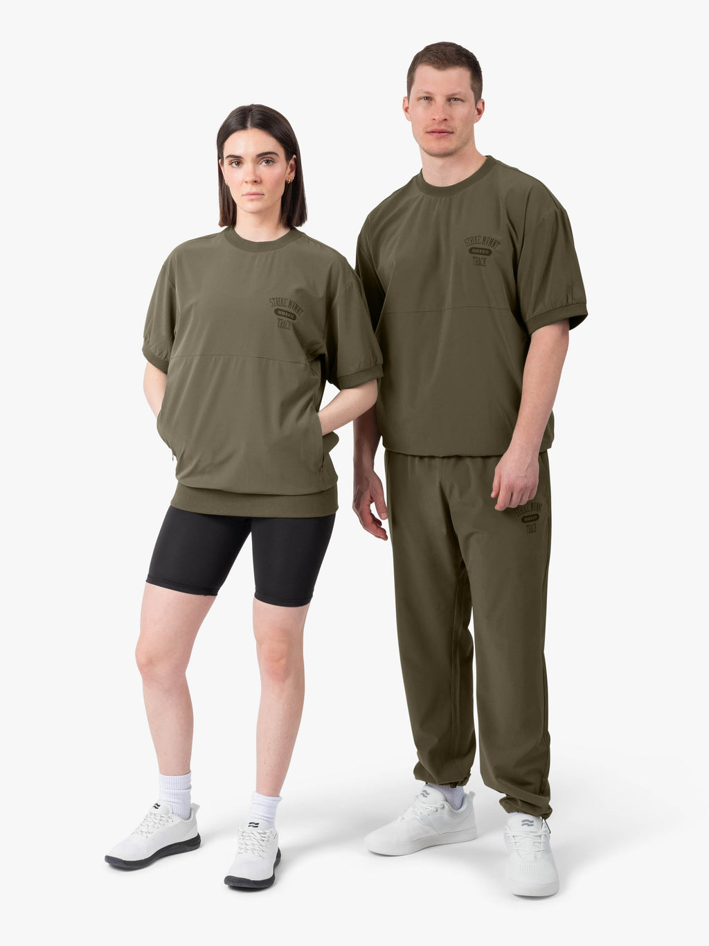 Lightweight short-sleeved top featuring our QuickDry™ 4-way stretch fabric. Large ChillMesh™ lined zippered kangaroo-style pocket. Wear it on its own or over a t-shirt or tank top for warm-up and cool-down periods. Doubles as a windbreaker for early morning runs or whenever the temperature calls for an extra layer. Track logo print.