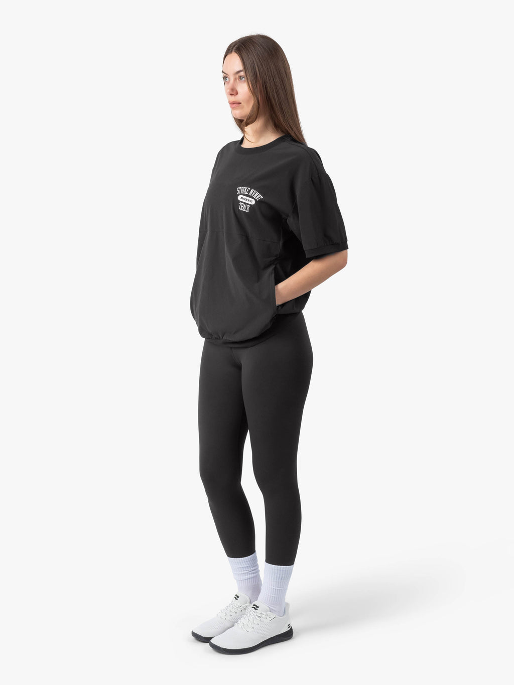 Lightweight short-sleeved top featuring our QuickDry™ 4-way stretch fabric. Large ChillMesh™ lined zippered kangaroo-style pocket. Wear it on its own or over a t-shirt or tank top for warm-up and cool-down periods. Doubles as a windbreaker for early morning runs or whenever the temperature calls for an extra layer. Track logo print.