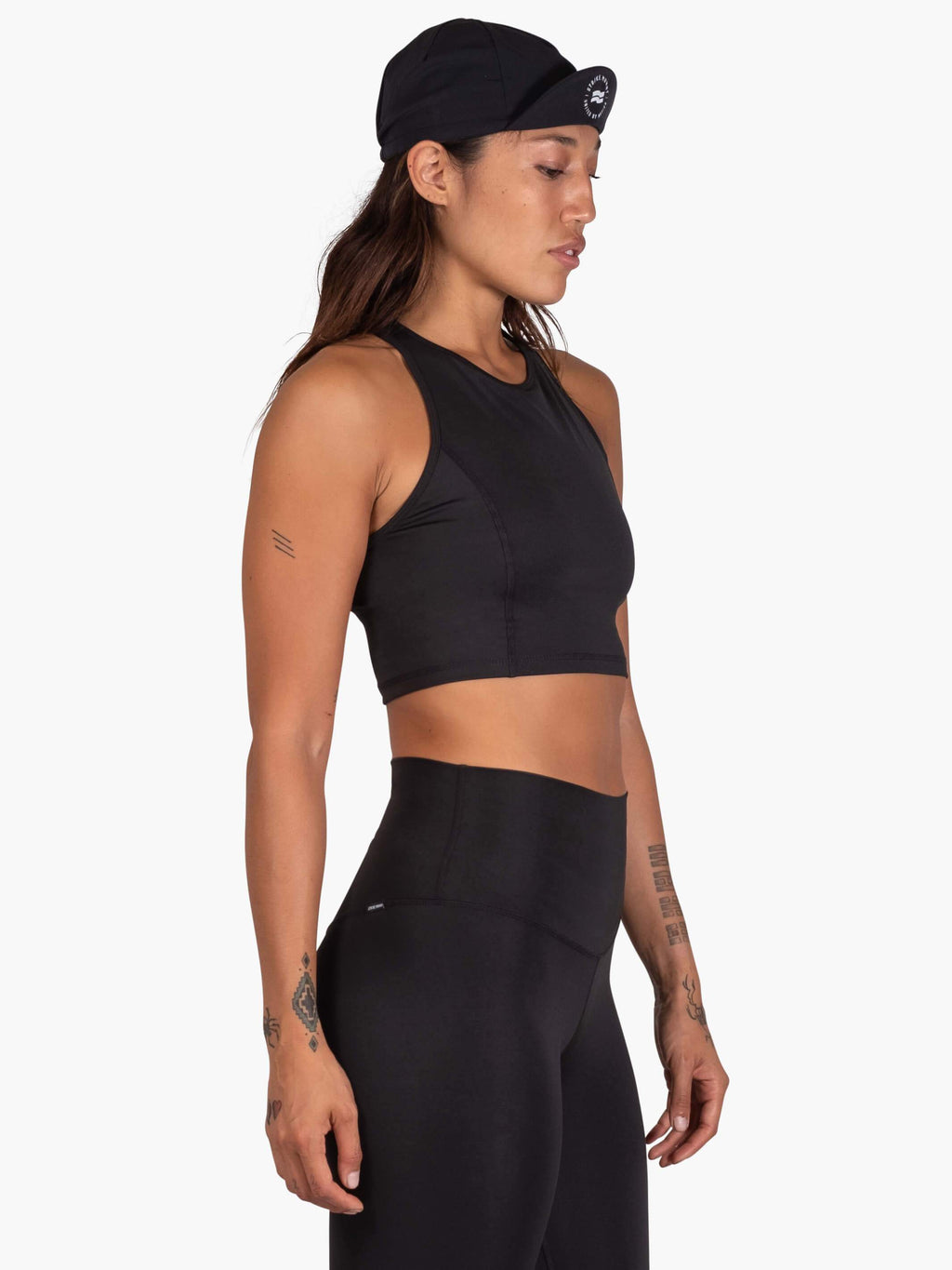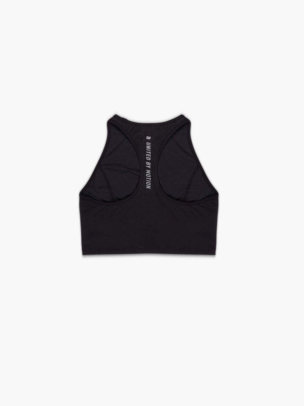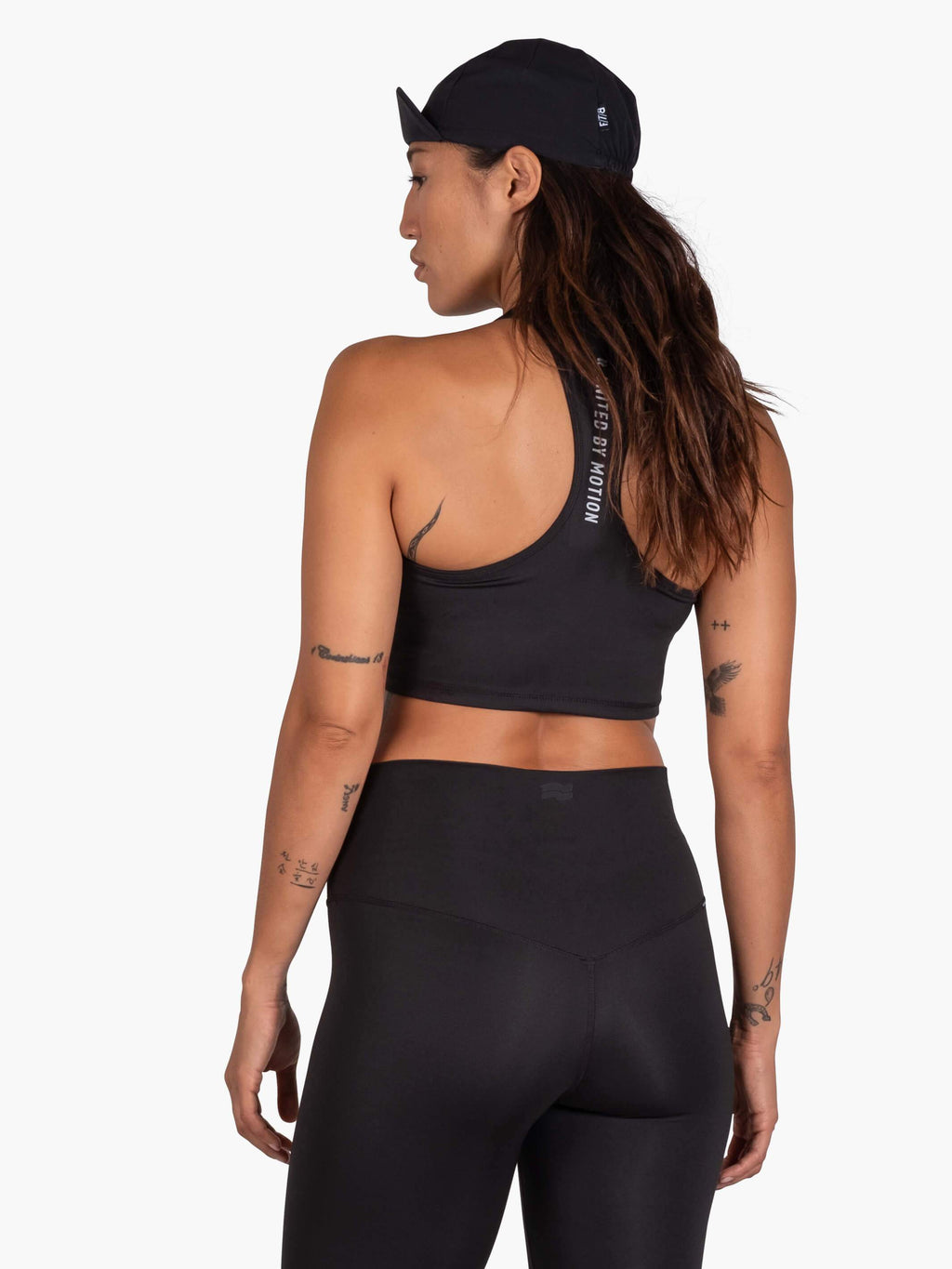 High-coverage sports bra meets the timeless silhouette of an athletic racerback cropped tank. Medium support tailored for movement. Wear it on its own or under a tank or tee.