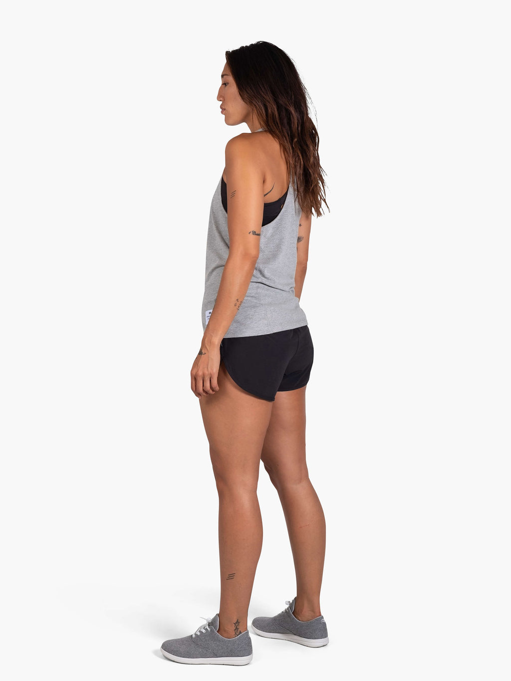 Oversize basketball style tank with dropped arm holes and breathable full mesh back panel. Lightweight coverage with total mobility. Loose fit helps regulate temperature during more intense workouts.
