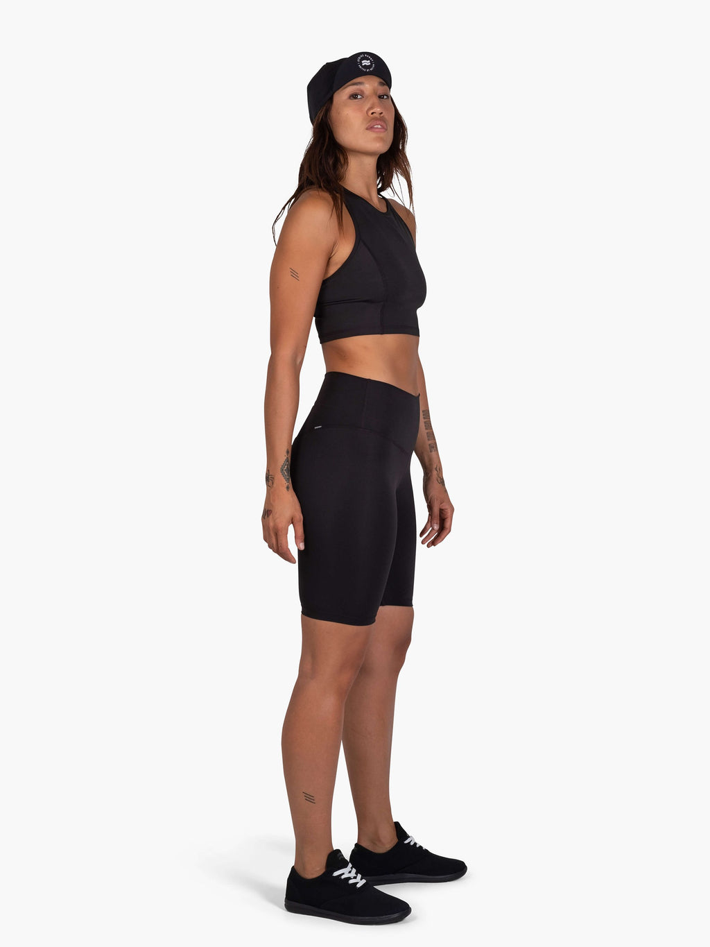 Mid-rise, compression fit, bike short cut that's performance and lifestyle ready.